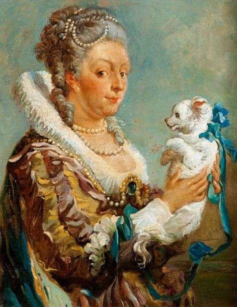 Portrait de femme et son chien Huile sur toile 40 x 32 cm