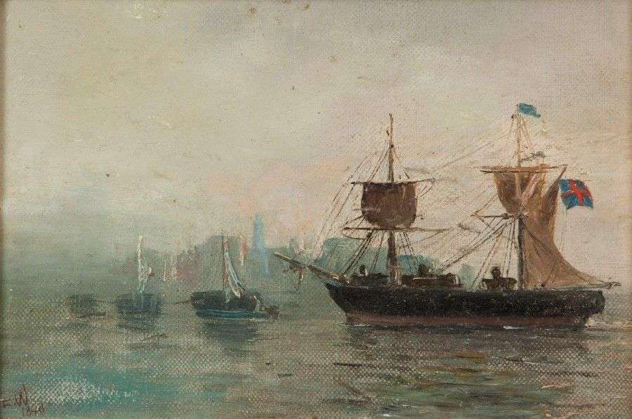 Marine Huile sur toile marouflée sur panneau, monogrammée et datée en bas à gauche 15 x 22.5 cm