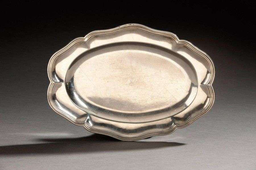 Plat ovale en argent de forme violonnée, modèle filets et contours. Paris,