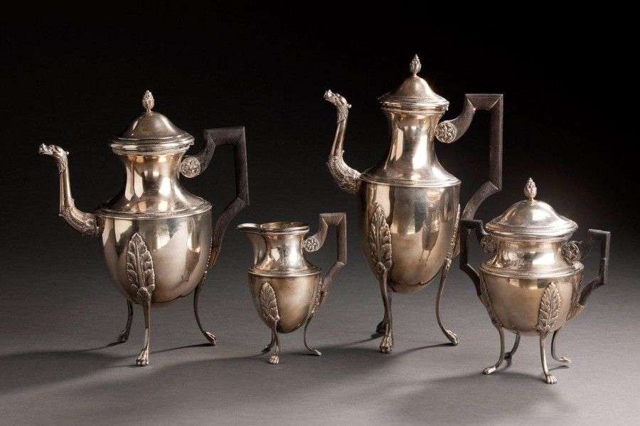 Important service à thé et café en argent de style Empire, posant sur des