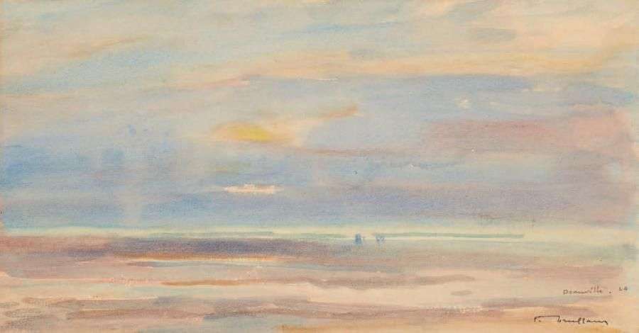 Coucher de soleil à Deauville, 1924 Aquarelle, signée, située et datée en bas à droite 19 x 36 cm à vue