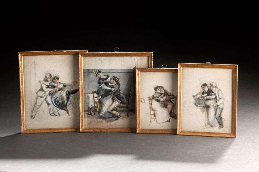 "L'adultère avec la femme de chambre" Amusante série de quinze aquarelles,