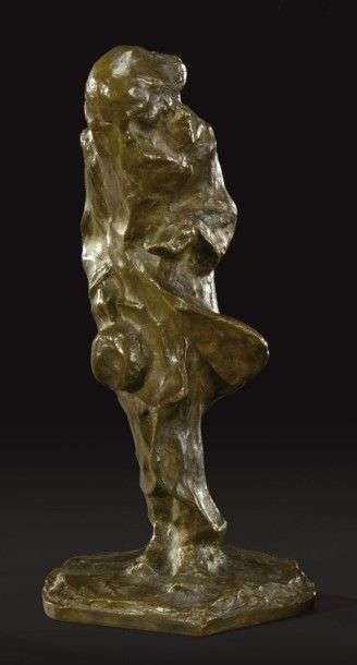 «Le mendiant» Epreuve en bronze à patine verte nuancée brune. Signée sur la terrasse «B.Hoetger Paris». Fonte d'édition ancienne, vers 1920. H: 27 cm