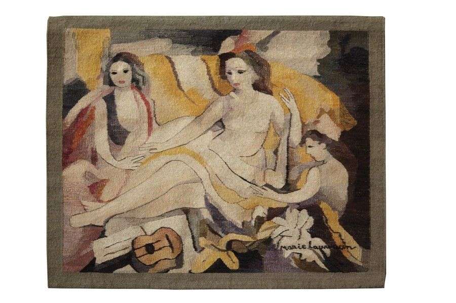 Tapisserie en laine rase polychrome au point noué. Signée en bas à droite. Dimensions: 89x104 cm
