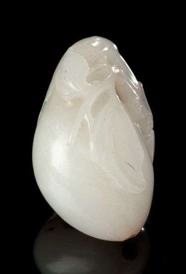 Pêche de longévité et citron digité en jade clair sculpté. 19ème siècle Long.: 5 et 6 cm éclats au citron