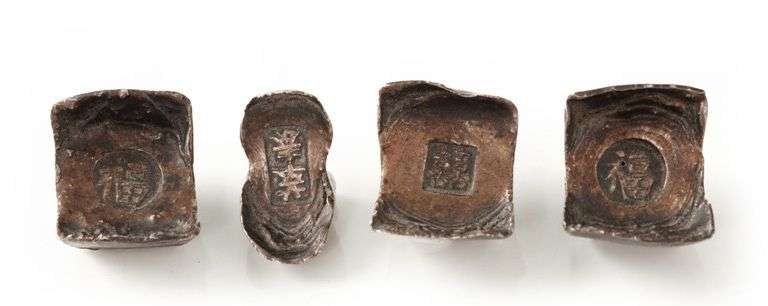 Quatre petits poids en argent frappé de poinçons. 19-20ème siècle Poids: 125 g