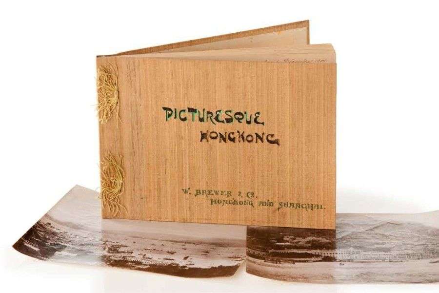 Picturesque Hongkong Album représentant ving-quatre vues colorisées de Hong-Kong, Canton et Macao. Edition W.Brewer & co publishers Hong-Kong and Shanghai. Couverture en tissu Dim.: 15.5 x 21.5 cm quelques piqûres