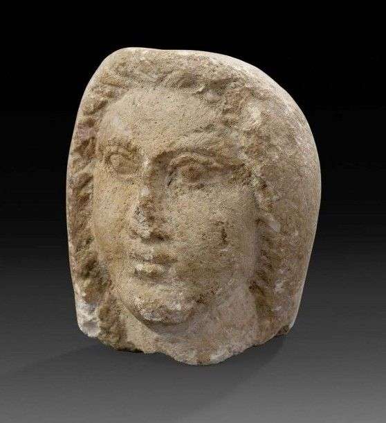 en calcaire tendre, le voile découvrant la partie gauche du visage
