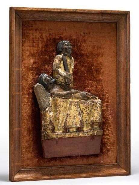 FRAGMENT DE MISE AU TOMBEAU Bois polychromé doré Le Christ est représenté