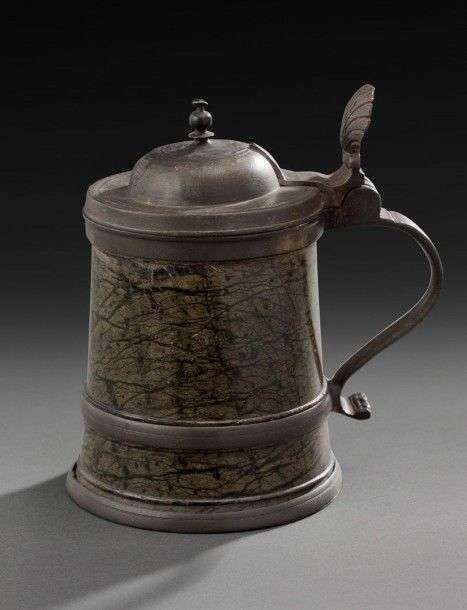 en serpentine vert foncé. Monture en étain gravéés des initiales KF.