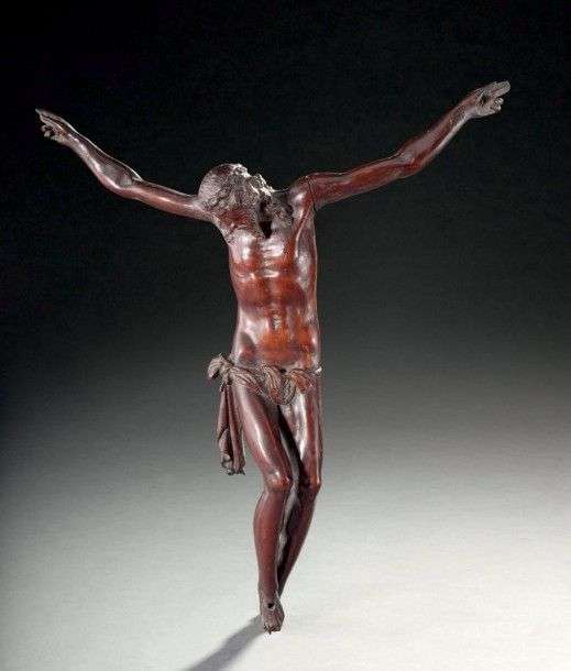 en croix, aux yeux mi-clos, perizonium à chute latérale droite, jambes longues.