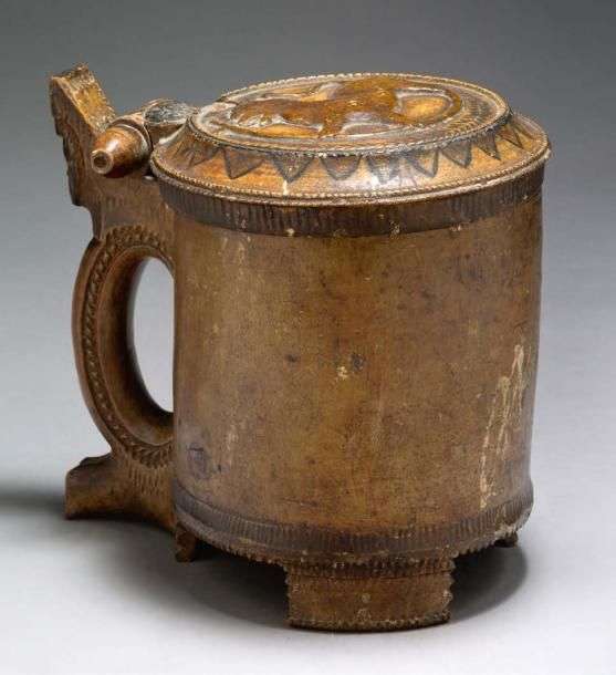CHOPE COUVERTE en bois sculpté, anciennement laqué, le couvercle à légère