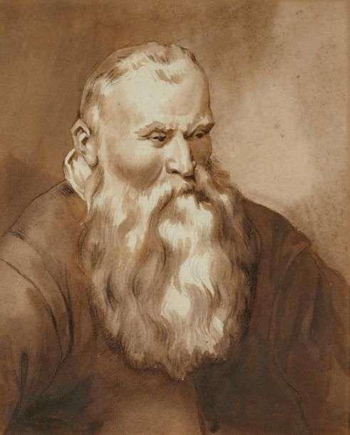 Ecole hollandaise XVIIème siècle Portrait de vieillard Encre et lavis 21 x 17 cm à vue