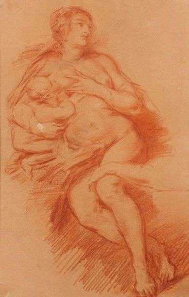 Femme allaitant Sanguine sur papier calque collé sur carton 39,5 x 25,5 cm