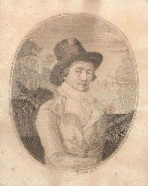 Portrait d'homme Pierre noire Annoté en bas: "David p.x". Encadré baguette XVIIIème siècle. 19 x 16,5 cm