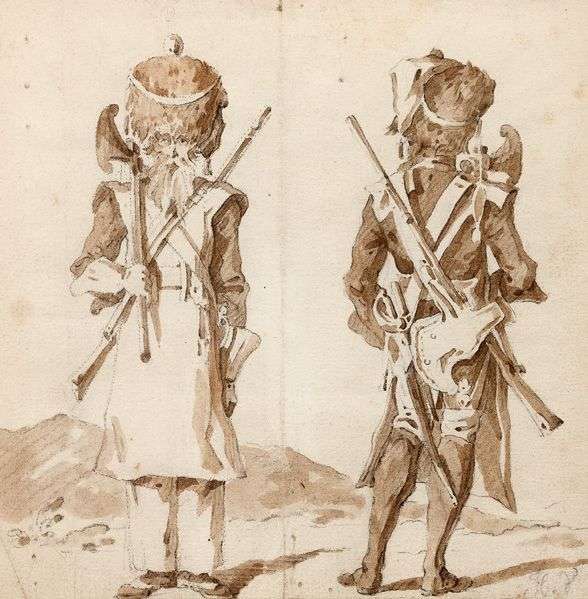 Militaires de face et de dos Dessin au lavis 14,5 x 14 cm