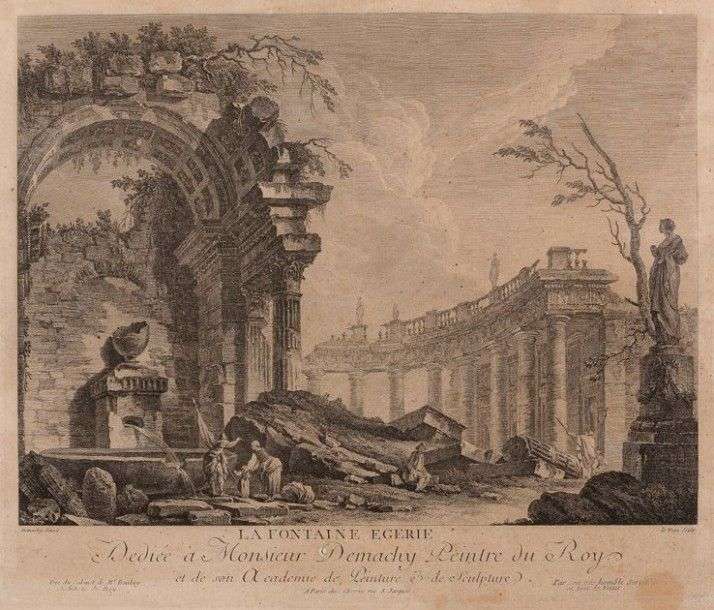 Gravure en noir d'après Demachy La Fontaine Egerie XVIIIème siècle 39 x 33 cm (*)