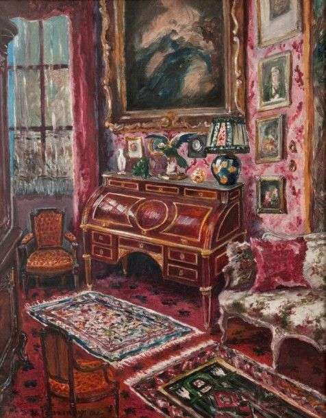 Coin de salon Huile 39,5 x 31,5 cm