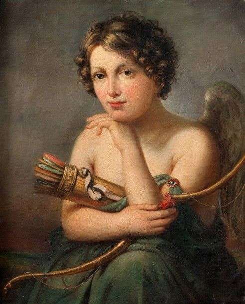 Cupidon Toile Trace de signature et daté en bas à gauche L.../ fecit 1834 63,5 x 51 cm