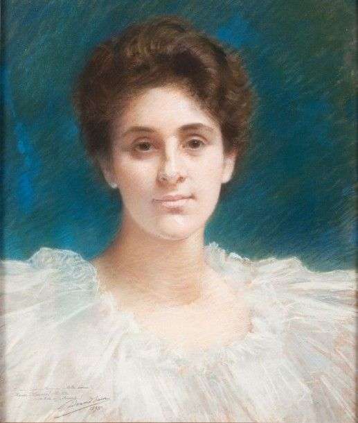 Portrait de femme à la robe d'organza Pastel Signé, dédicacé et daté 1895 H: 54 cm - L: 44 cm