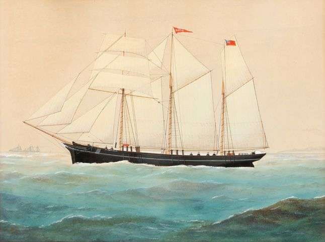 Trois mâts Gouache et aquarelle Dans un cadre en acajou et palmettes de laiton A vue 44,5 x 60 cm