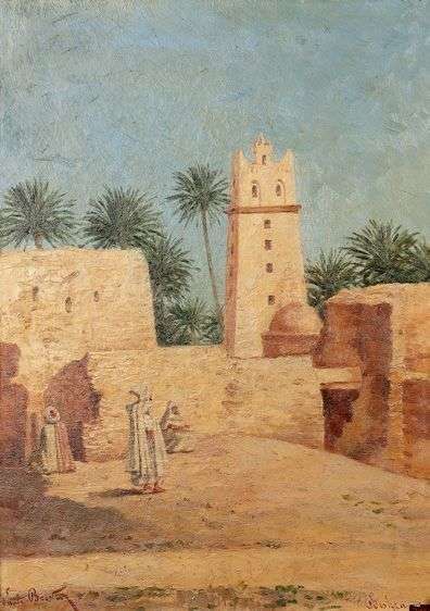 Vue de Biskra Huile sur toile, signée en bas à gauche et située en bas à droite 46 x 33 cm Restaurations anciennes.