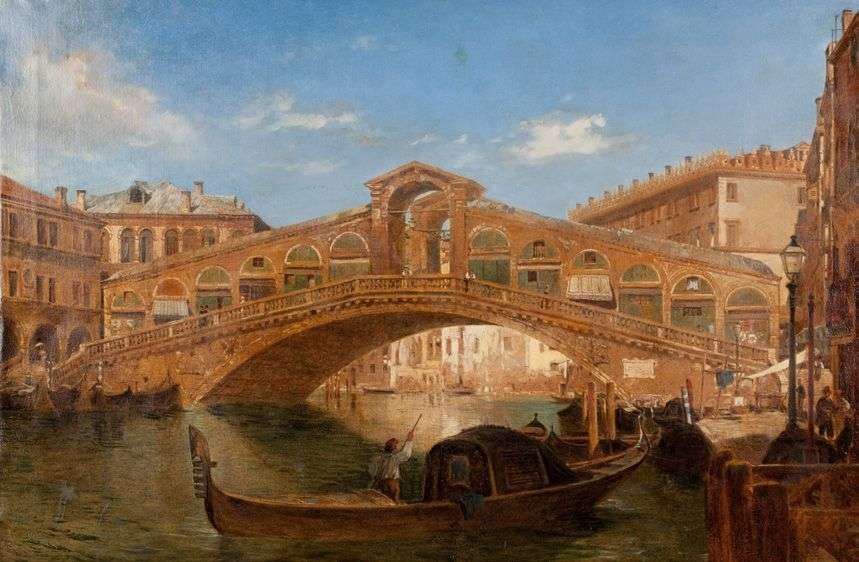 Vue du pont Rialto Huile sur toile 53 x 81 cm