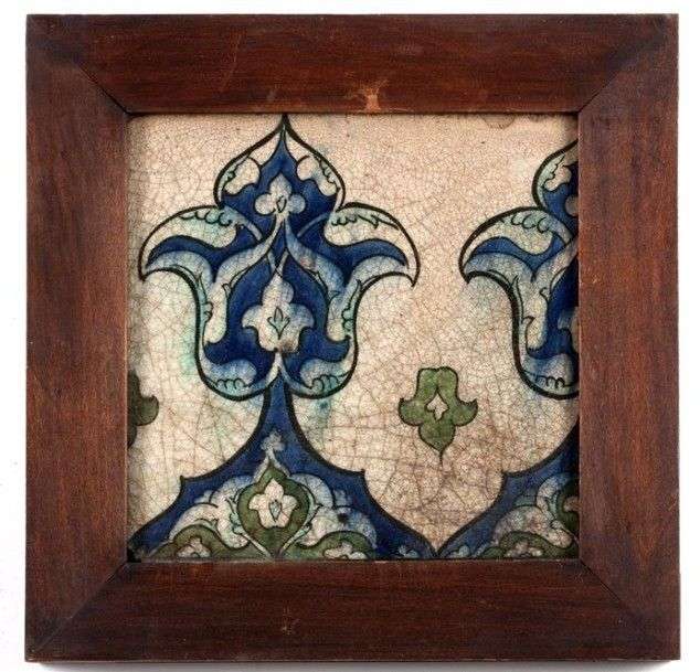 Carreau en céramique siliceuse à décor peint de larges mandorles XVIIème siècle A vue H: 29 cm - L: 29 cm