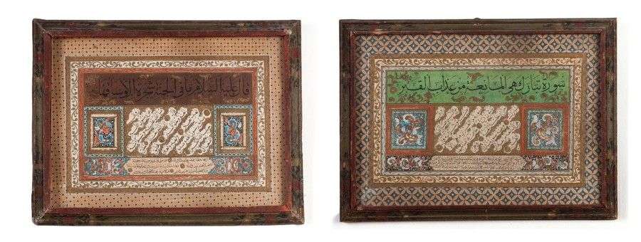 Deux pages d'enluminures islamiques XIXème siècle 17 x 26 cm