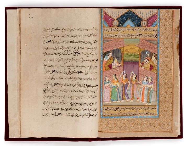 Recueil d'écritures avec 11 miniatures persannes XIXème siècle Couverture en velours rouge H: 30,5 - L: 21 cm