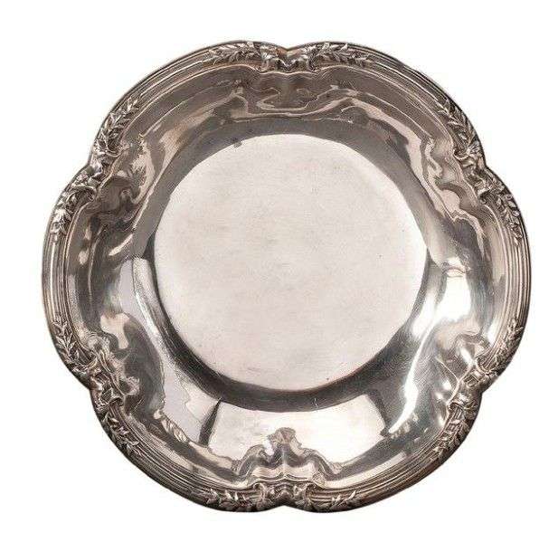 Jatte creuse polylobée en argent, à décor de filets contours et agrafes. Poinçon Minerve Orfèvre: Boulenger Diam 27.5 cm Pds: 736 grs