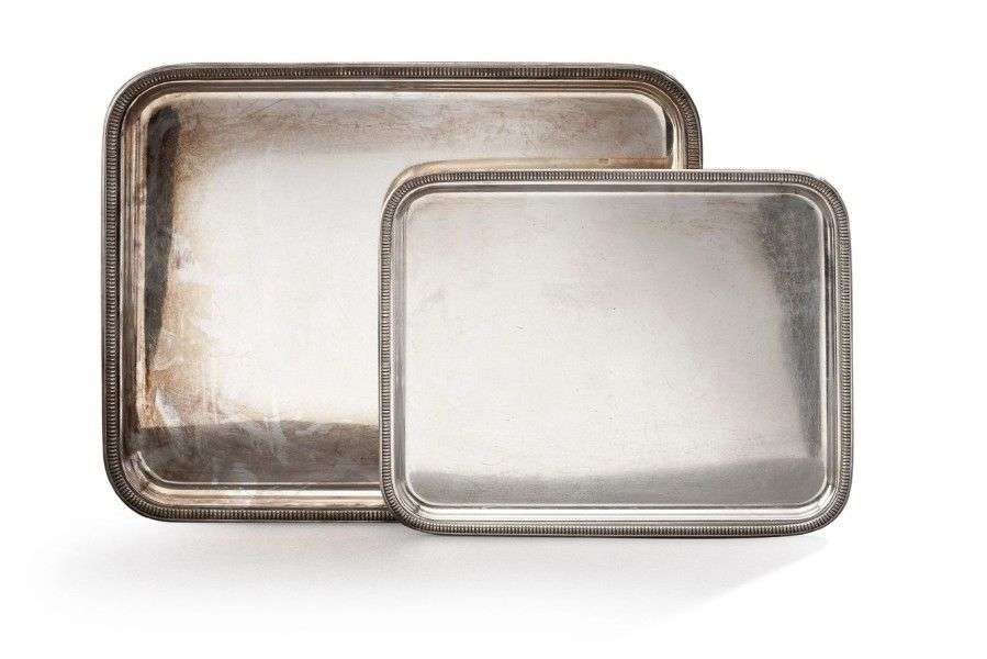 Deux plateaux en métal argenté à frise de godrons Un grand et un autre plu