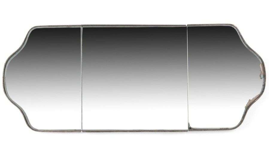 Centre de table en trois parties, en métal argenté à décor de filets rubannés. Fond de glace L: 112 - l: 45 cm