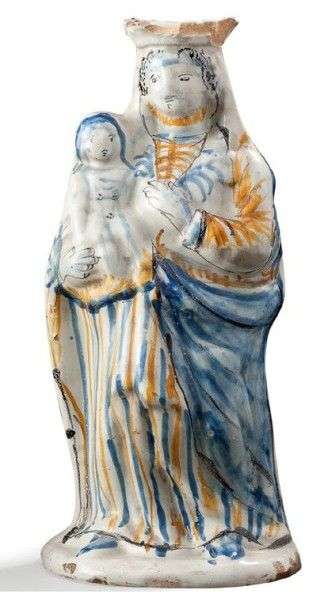 Vierge en faïence polychrome de Nevers XVIIIème siècle H: 33.5 cm Accident