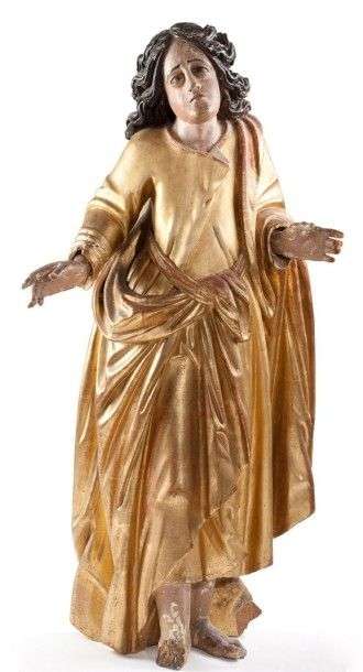 Statue en bois sculpté, doré et laqué à décor «au naturel»| elle représent