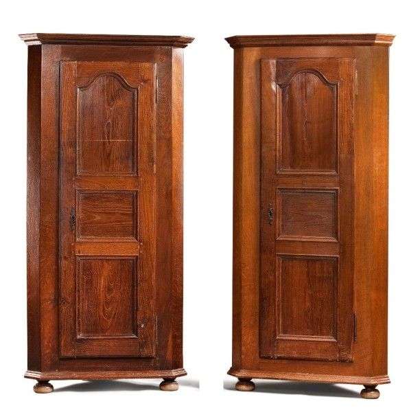 Paire d'armoires d'angle En chêne mouluré H: 191 - P: 55 cm.(*)