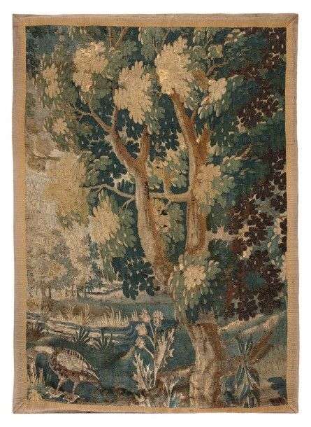 Fragment de tapisserie à décor d'un volatile sur fond de verdure H: 142 - L: 113 cm Accidents et usures