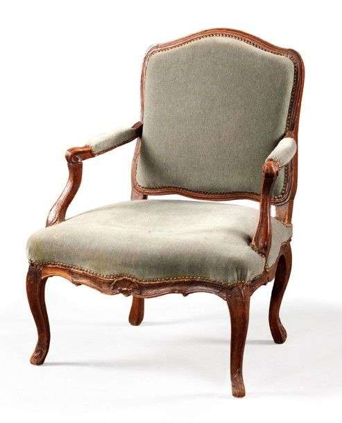 Fauteuil à dos plat en bopis naturel mouluré Bras et pieds cambrés Epoque Louis XV