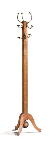 Porte-manteau marqueté en citronnier et filets d'amarante| il comporte six patères et trois porte-chapeaux| pieds en consoles| lest sphérique. XIXème siècle. H: 193 cm.