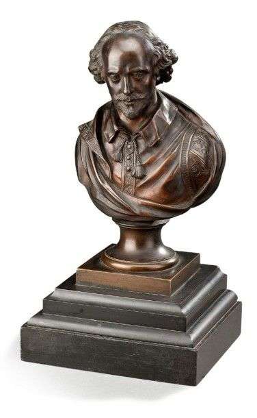 Buste en bronze ciselé et patiné représentant William Shakespeare| piédouc