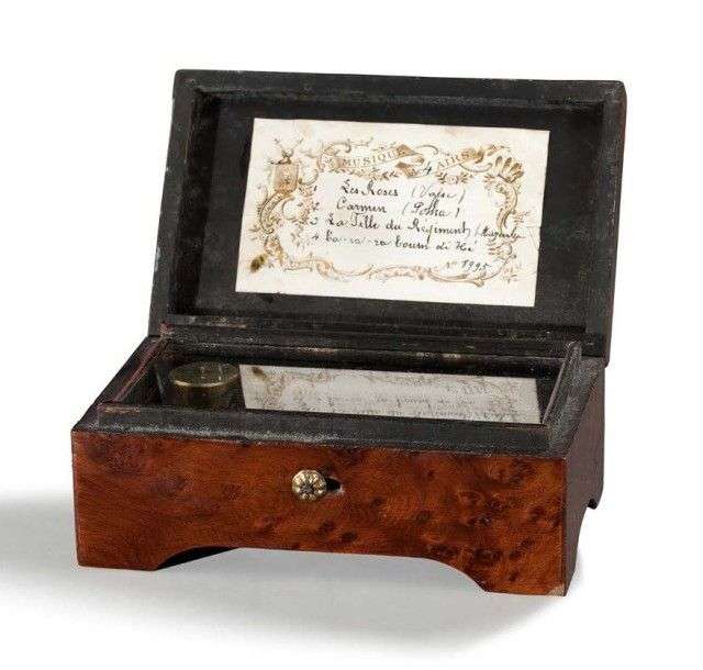 Boite à musique à 4 airs Dans un coffret en acajou XIXème siècle H: 6 L: 1