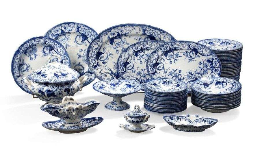 Partie de service Creil et Montreau Service Flora comprenant des assiettes