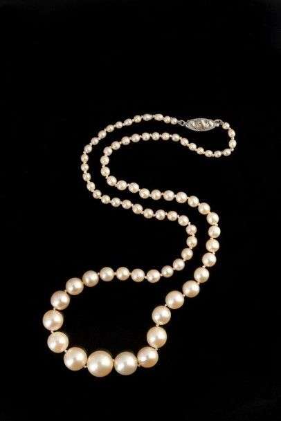 Collier composé de perles de culture et de perles fines. Fermoir orné de t