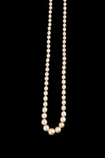 Collier composé de 107 perles supposées fines - non testées - en chute. Fe