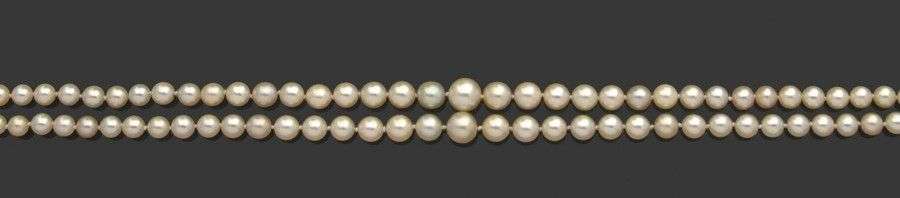 Collier composé de deux rangs de 79 perles fines et 82 perles de culture e