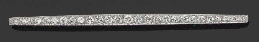 Grande broche barette en platine sertie d'une ligne de diamants de taille ancienne. Long.: 10 cm env - Poids brut: 13gr A diamond and platinium brooch.