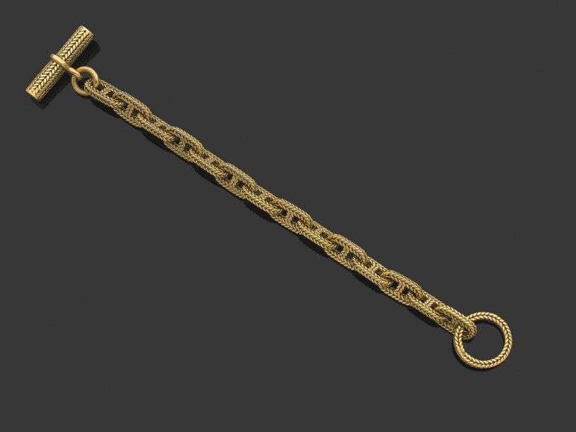 Bracelet "chaîne d 'ancre" en or jaune 18k tressé. Signé et numéroté. Dans son écrin. Long: 21.5 cm - Poids brut: 65.5 gr A yellow gold bracelet by Hermès.