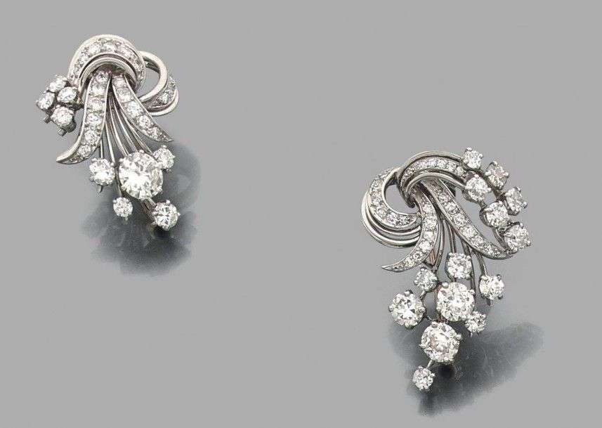 Ensemble de deux broches assorties en platine et or gris 18k serties de di
