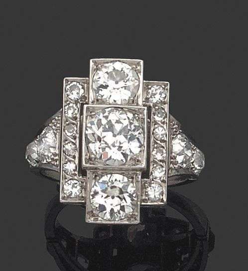 Bague en platine sertie de diamants de taille ancienne et diamants huit-huit. Vers 1935. Tour de doigt: 51- Poids brut: 5.7 gr A diamond and platinium ring.