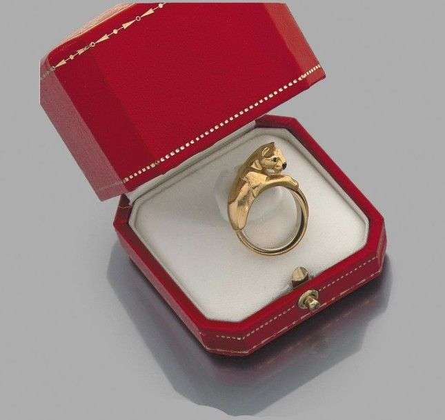 Bague ornée d'un motif "panthère" en or jaune 18k. Tour de doigt composé des trois "anneaux". Signée et dans son écrin. Tour de doigt: 51 - Poids brut: 12.3 gr A pink, white and yellow gold ring by Cartier.